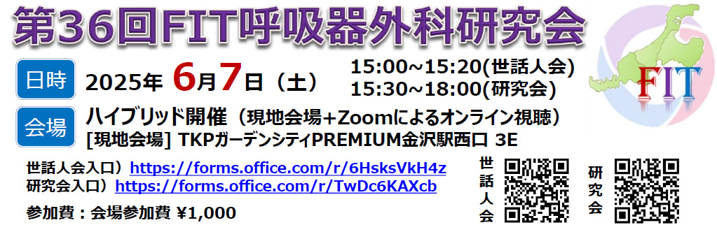 FIT呼吸器外科研究会は福井[F]、石川[I]、富山[T])にまたがる研究会です。